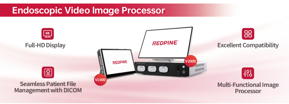 Certified EBI function (Enhanced Band Imaging):The image system V1000D with the certified EBI function that boosts contrast and visibility of blood vessels and mucosa
